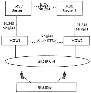 主要是通過測試儀表模擬兩個(gè)NGN網(wǎng)絡(luò)的終端用戶,首先通過同NGN網(wǎng)絡(luò)的信令交互建立起這兩個(gè)用戶之間的呼叫連接,然后在該連接上模擬發(fā)送和接收測試語音流,通過對收發(fā)語音信號的比較,來測試出端到端的語音質(zhì)量,并且能提供PESQ值和時(shí)延值,圖3為主動(dòng)式語音質(zhì)量測試的結(jié)構(gòu)圖。