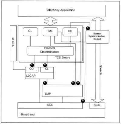 (3)CO(Connection)接口利用點對點信令發(fā)送TCS消息給L2CAP,以便在面向連接的信道上傳輸。