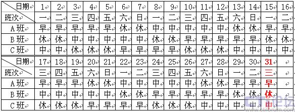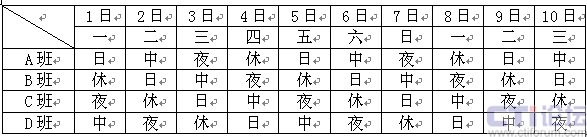 圖2 24小時四班三運(yùn)轉(zhuǎn)排班表2
