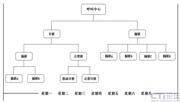 合理運(yùn)用人力資源是呼叫中心運(yùn)營管理的一個核心力量?茖W(xué)合理的排班不僅可以提高呼叫中心運(yùn)營質(zhì)量,而且可以平衡坐席的工作量,同時更可以降低公司運(yùn)營成本。實(shí)踐是檢驗(yàn)真理的最好辦法,以下的排班方案在呼叫中心的實(shí)際運(yùn)行中證明是科學(xué)、合理、有效的。方案的主要內(nèi)容: