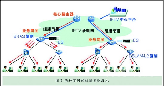 BRAS和DSLM都可以很好地解決組播問題。但由于BRAS在DSLAM的上層,因此如果采用BRAS組播方式,其特點是投資相對較少、控制較為方便,但是下層從BRAS到DSLM,用戶終端的帶寬占用較大。如果采用DSLAM組播方式,其特點是投資相對較多,控制較復(fù)雜,但是下層從BRAS到DSLM,用戶終端的帶寬占用較小。因此要根據(jù)各地具體情況來決定采用在何處進(jìn)行組播復(fù)制。但無論如何,組播復(fù)制要確保不能影響用戶的收看質(zhì)量。