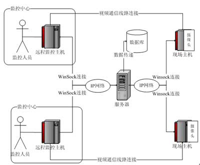 本系統(tǒng)基于瘦客戶端的C/S模式,在體系結(jié)構(gòu)上采用以服務(wù)器為中心的星型結(jié)構(gòu),創(chuàng)新性地把監(jiān)控現(xiàn)場端和監(jiān)控中心端C角色化。即在本系統(tǒng)中所有的監(jiān)控現(xiàn)場端和監(jiān)控中心端相對整個(gè)系統(tǒng)的架構(gòu)而言都是客戶端,它們的通信都需要經(jīng)過服務(wù)器的驗(yàn)證中轉(zhuǎn)。同時(shí),監(jiān)控中心使用者的登錄由于這種架構(gòu)模式,也必須要經(jīng)過服務(wù)器的驗(yàn)證才能成功登錄,進(jìn)而獲得監(jiān)控的權(quán)利。