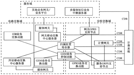 主要實(shí)現(xiàn)各類數(shù)據(jù)增值業(yè)務(wù),例如WAP業(yè)務(wù)、互聯(lián)網(wǎng)短信業(yè)務(wù)、位置應(yīng)用業(yè)務(wù)等。業(yè)務(wù)域由各業(yè)務(wù)網(wǎng)關(guān)/業(yè)務(wù)平臺(tái)產(chǎn)生CDR后,發(fā)送給計(jì)費(fèi)系統(tǒng)作后續(xù)處理。例如,多媒體信息服務(wù)(MMS)的CDR由MMS