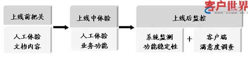 上線中人工體驗(yàn)監(jiān)控:業(yè)務(wù)上線電子渠道后立即人工體驗(yàn),以客戶的感知為主要依據(jù),體驗(yàn)業(yè)務(wù)功能是否正常。