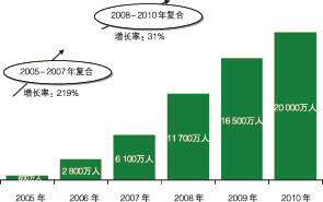 從2005年到2010年,預(yù)計中國無線搜索用戶數(shù)量的變化如圖4所示。