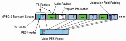 TS(MPEG Transport Stream)包括多元的語(yǔ)音和視頻流封裝并承載在RTP/UDP或者直接在UDP上進(jìn)行視頻傳送。并且通過(guò)PID進(jìn)行語(yǔ)音和視頻的同步。TS流分為單節(jié)目的TS流(SPTS,Single
