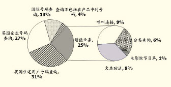 英國各類號(hào)碼查詢業(yè)務(wù)量的比重(呼叫次數(shù))