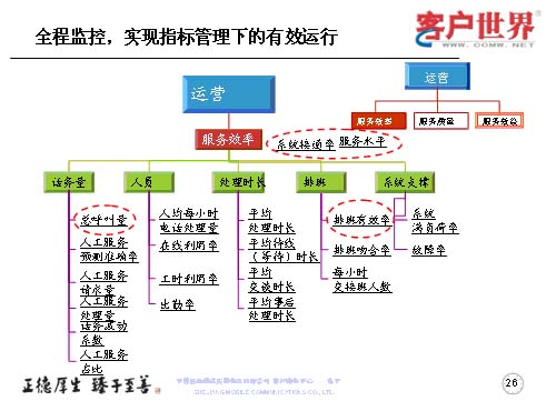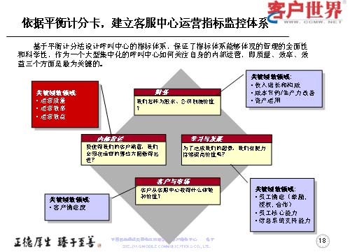 第一,是依據(jù)平衡計分卡原理,建立了客服中心運營指標監(jiān)控體系,以實現(xiàn)呼叫中心的規(guī)模化經(jīng)濟運營。