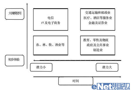 象限4--代表位于該象限的行業(yè)已經(jīng)開始大規(guī)模使用通信產(chǎn)品,同時還有很大的市場潛力,該類行業(yè)對通信要求很大,我們預(yù)測供應(yīng)商在此領(lǐng)域會將得到很大的利潤