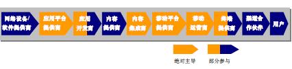 3G時(shí)代的移動(dòng)通信產(chǎn)業(yè)鏈由技術(shù)平臺(tái)提供商、設(shè)備提供商、應(yīng)用平臺(tái)提供商、應(yīng)用開(kāi)發(fā)商、內(nèi)容提供商、內(nèi)容集成商、移動(dòng)平臺(tái)提供商、移動(dòng)運(yùn)營(yíng)商、終端提供商、渠道合作伙伴等市場(chǎng)主體構(gòu)成。移動(dòng)通信產(chǎn)業(yè)鏈?zhǔn)且粋(gè)整體功能鏈狀網(wǎng)絡(luò),構(gòu)成產(chǎn)業(yè)鏈的市場(chǎng)主體隨著移動(dòng)通信技術(shù)、市場(chǎng)競(jìng)爭(zhēng)情況以及用戶需求的變化而變化。移動(dòng)運(yùn)營(yíng)商在產(chǎn)業(yè)鏈上發(fā)揮的作用也是不同的,每當(dāng)產(chǎn)業(yè)鏈發(fā)生變化時(shí),移動(dòng)運(yùn)營(yíng)商就需要重新進(jìn)行角色定位。