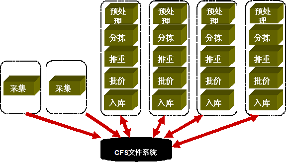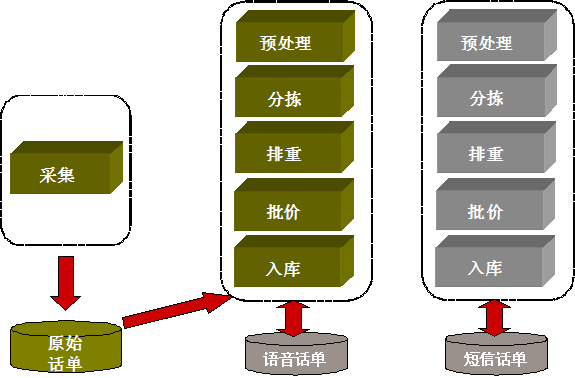 2.系統瓶頸。因為所有的采集、預處理、分揀、排重、批價進程跑在一個服務器上,對服務器資源的要求非常高。尤其是語音話單部分,單臺服務器的處理能力成了整個計費系統的性能瓶頸,由于文件系統只能同時掛載在一臺服務器上,所以應用也不能橫向擴展,限制了業(yè)務的發(fā)展。尤其是在話單重批、月末出賬等高壓情況下,應用服務器都是遠超負荷在跑,嚴重影響重批和出賬的速度。