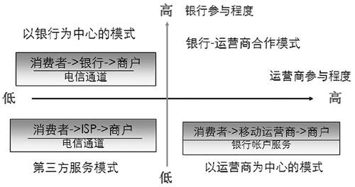 系統(tǒng),通過定制終端,電信運(yùn)營商可以將各種先進(jìn)的移動(dòng)應(yīng)用提供給用戶,使用戶獲得良好的移動(dòng)化生活體驗(yàn)。因此,電信運(yùn)營商在移動(dòng)支付方面具有較好的用戶資源和營銷渠道?梢,電信運(yùn)營商和銀行的協(xié)作程度在很大程度上決定了移動(dòng)支付商業(yè)模式的績效水平。