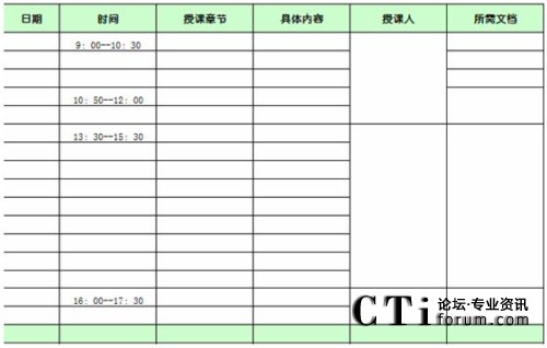 表格內(nèi)容包括:培訓(xùn)日期、時(shí)間、授課內(nèi)容、授課人員、所需文檔等。