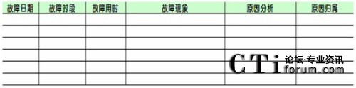表格內(nèi)容包括:故障日期、時(shí)段、用時(shí)、現(xiàn)象、原因及歸屬。