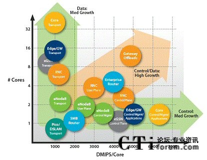 例如,要想滿(mǎn)足移動(dòng)寬帶的要求,RNC 用戶(hù)層應(yīng)用需要用戶(hù)密度、每個(gè)處理器采用 4 到 8 個(gè)內(nèi)核,以及用戶(hù)峰值吞吐量(CPU 性能應(yīng)高于 1.5 GHz)的正確混合。因此,未來(lái)的通信處理器必須實(shí)現(xiàn)多核處理器和強(qiáng)大 CPU 內(nèi)核的最佳平衡。