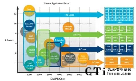 圖1顯示出,一系列不同應(yīng)用對(duì)內(nèi)核性能和內(nèi)核數(shù)量有著平衡的要求,這是市場(chǎng)成功的關(guān)鍵。
