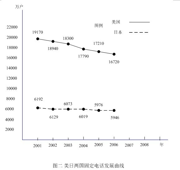 〔3〕大約有2%的美國家庭沒有電話。IBB咨詢公司資深分析師表示,「美國擁有大量愛講電話的人,可以隨處打電話正是美國人熱衷的事情! 大型傳統(tǒng)電話公司如AT&T、威瑞森(Verizon),受到美國人的這一偏好的影響,移動(dòng)通信業(yè)務(wù)現(xiàn)都已經(jīng)超過了他們?cè)镜暮诵臉I(yè)務(wù)(固定電話)。據(jù)桑福.伯恩斯坦公司的調(diào)查顯示,紐約地區(qū)固定電話的數(shù)量,從2000年以來已經(jīng)下降了55%,新澤西的情況也差不多,下降了50%。德州下降了20%,加州下降了21%。在年輕用戶中這個(gè)趨勢(shì)更為明顯:34.5%的25到29歲年齡段者,家中只有移動(dòng)電話,30到44歲年齡段者,這個(gè)比例下降至15.5%,65歲以上者,只有2.2%。雖然移動(dòng)電話對(duì)固定電話的取代作用,日美兩國基本相似,但在日本通信公司卻是IP電話和VoIP電話的主要提供者,因此日本固定電話歷年下降曲線就比較平坦,不像美國那樣厲害,請(qǐng)見圖二。