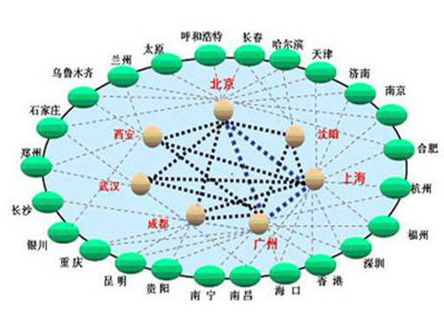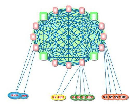 網(wǎng)絡(luò)扁平化概念就適時提出來了,F(xiàn)在,網(wǎng)絡(luò)扁平化已經(jīng)是運營商網(wǎng)絡(luò)建設(shè)的主要指導(dǎo)思想了。特別是中國聯(lián)通,由于歷史原因造成的骨干網(wǎng)節(jié)點并不夠多導(dǎo)致其南北方網(wǎng)絡(luò)品質(zhì)存在一定差異。而扁平化后能很好的解決此問題。下圖為網(wǎng)絡(luò)扁平化示意圖。