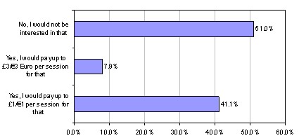 從國(guó)外運(yùn)營(yíng)商的經(jīng)驗(yàn)看,差異化溢價(jià)業(yè)務(wù)對(duì)部分老用戶很有吸引力。目前主要的差異化且可以獲得溢價(jià)收入的業(yè)務(wù)有金銀銅牌業(yè)務(wù)包、視頻業(yè)務(wù)保證包、基于時(shí)間段的加速器卡、社交網(wǎng)絡(luò)特惠包,以及智能手機(jī)優(yōu)先等。從下面的調(diào)查表可以看出,愿意支付溢價(jià)享受高質(zhì)量視頻/TV節(jié)目的用戶占49%。調(diào)查中,其他溢價(jià)業(yè)務(wù)也受到了用戶的積極反饋。