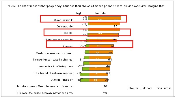 最后,同時(shí)也是最重要的,智能管道可以幫助運(yùn)營(yíng)商提高用戶滿意度并鎖定高端用戶。愛立信消費(fèi)者研究室針對(duì)終端用戶做過詳實(shí)的統(tǒng)計(jì)調(diào)查,結(jié)果顯示,對(duì)用戶滿意度影響較大的前5項(xiàng)因素分別是網(wǎng)絡(luò)容量、網(wǎng)絡(luò)覆蓋、業(yè)務(wù)可靠性、業(yè)務(wù)易用性和價(jià)格,參見下圖。