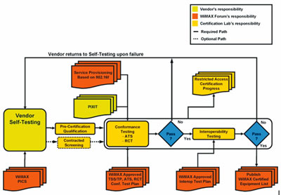 - 通過實(shí)驗(yàn)室的一致性認(rèn)證之后,按照WiMAX認(rèn)可的互操作測試計(jì)劃,該設(shè)備將繼續(xù)在實(shí)驗(yàn)室進(jìn)行與其他廠家的設(shè)備(至少3家)互通操作測試,通過互操作測試的設(shè)備就可以得到“WiMAX®CERTIFIED”標(biāo)識。