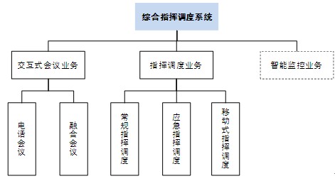 基于融合通信平臺(tái)的綜合指揮調(diào)度系統(tǒng)可分為交互式會(huì)議業(yè)務(wù)、指揮調(diào)度業(yè)務(wù)和智能監(jiān)控業(yè)務(wù),而交互式會(huì)議業(yè)務(wù)分為電話會(huì)議和在電話會(huì)議基礎(chǔ)上升級的融合會(huì)議產(chǎn)品兩種,指揮調(diào)度業(yè)務(wù)分常規(guī)指揮調(diào)度、應(yīng)急指揮調(diào)度和移動(dòng)式指揮調(diào)度三種。