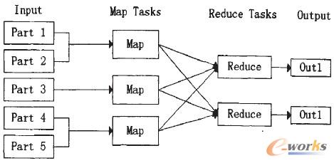 作為云計(jì)算的核心,簡(jiǎn)單來(lái)講Map Reduce就是“任務(wù)的分解與結(jié)果的匯總”,圖3是其工作模式示意圖。