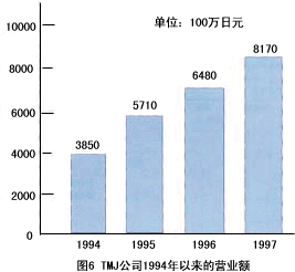 ——該公司成立于1992年,現(xiàn)在是日來第4大電話營銷專業(yè)公司。該公司是從原福武書店的電話中心獨立出來的。福武書店的”進研學習會”(類似于中國的函授大學)在日本全國擁有401萬會員。對這些會員的客戶服務(wù)目前占TMJ業(yè)務(wù)的50%,盡管TMJ成立時間不長。但由于積極引進先進技術(shù)(CTI,IVR,ACD,預(yù)撥號)和先進的管理方式,發(fā)展非常迅猛。1997年營業(yè)額達到81億7千萬日元,總席位有1,500個,外線數(shù)3,00O條,登錄業(yè)務(wù)代表達4,350人,該公司擁有6個呼叫中心(東京3個,大販、名古屋、岡山各1個),每月平均呼入電話63萬個,呼出電話60萬個。該公司的主要業(yè)務(wù)有:訂購、預(yù)約受理、促銷活動、銷售支持、客戶服務(wù)中心,其中面向消費者/面向企業(yè)的比例為4∶1。圖6為TMJ公司1994年以來的營業(yè)額。