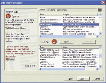 由開放領(lǐng)域軟件(Open Field Software)新開發(fā)的Ella 能分揀電子郵件,并將垃圾郵件撇在一邊。如果你渴望清理你的郵箱又舍不得放棄Outlook 的話,Ella就是你理想的選擇。大多數(shù)電郵軟件的分類都是以信件的特定部位來進(jìn)行分類的,如發(fā)件人的姓名或郵件主題。而Ella的分類更加詳盡周到,分類元素有100多種,從發(fā)信人到信件內(nèi)容再到信件來源,可一一進(jìn)行分類。如圖: