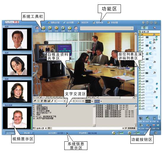 視頻會(huì)議系統(tǒng)Active Meeting3.2憑借其流暢清晰的多路視頻交互,高保真的混音廣播功能和完善的5種數(shù)據(jù)共享模式,并具有相當(dāng)?shù)挠布嫒菪,既可以?shí)現(xiàn)遠(yuǎn)程音視頻客戶服務(wù)、也可以借助其強(qiáng)大的交互性召開多方視頻會(huì)議、并且還可以多種數(shù)據(jù)共享模式進(jìn)行遠(yuǎn)程員工培訓(xùn)。