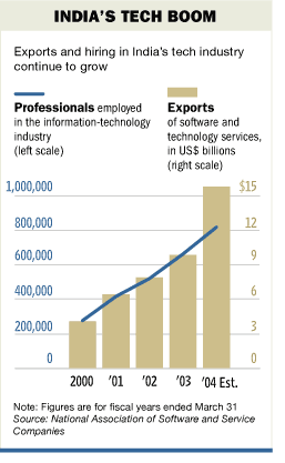 據(jù)印度軟件科技園的官員們介紹,在高科技中心班加羅爾,每周都會(huì)有兩三家西方公司的新業(yè)務(wù)在此開張,越來越多的公司將從軟件開發(fā)到企業(yè)后勤支持等工作外包給印度。