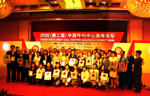2006年9月19日,上海。2006(第二屆)中國(guó)呼叫中心高峰論壇暨2006年中國(guó)(亞太)最佳呼叫中心評(píng)選頒獎(jiǎng)典禮今天在上海舉行;本屆會(huì)議由亞太地區(qū)包括中國(guó)、臺(tái)灣、香港、新加坡、馬來西亞、日本和韓國(guó)等7個(gè)國(guó)家和地區(qū)的呼叫中心行業(yè)協(xié)會(huì)共同主辦,第一次聯(lián)合在中國(guó)大陸舉行。作為亞太地區(qū)呼叫中心領(lǐng)域最高規(guī)格的年度大會(huì)及行業(yè)評(píng)選頒獎(jiǎng)活動(dòng),今年的會(huì)議主題確定為:“中國(guó)呼叫中心的體系化管理及亞太呼叫中心市場(chǎng)的機(jī)會(huì)”。來自通信、銀行、保險(xiǎn)、IT、電子、制造等行業(yè)的20余家呼叫中心運(yùn)營(yíng)機(jī)構(gòu)分獲最佳企業(yè)自建、最佳專業(yè)外包、最佳呼入服務(wù)、最佳呼出服務(wù)、最佳技術(shù)支持、最佳新建及最佳全國(guó)性呼叫中心管理團(tuán)隊(duì)等各專業(yè)獎(jiǎng)項(xiàng)。