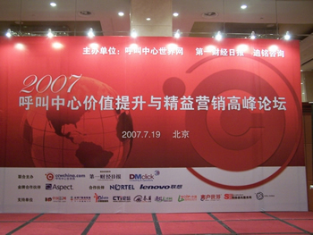 由呼叫中心世界網(wǎng)、第一財(cái)經(jīng)日?qǐng)?bào)、迪銘咨詢共同主辦的2007呼叫中心價(jià)值提升與精益營(yíng)銷高峰論壇2007年7月19日在北京隆重召開。本次論壇也得到了科勝通(Aspect)、北電網(wǎng)絡(luò)、遨游旅游網(wǎng)、聯(lián)想等企業(yè)的全面支持。吸引了400多名來(lái)自全國(guó)各地的呼叫中心行業(yè)管理精英和從業(yè)人員參會(huì)。