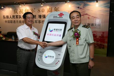 7月25日下午,中國聯(lián)通與解放軍總政治部宣傳部、解放軍報社等重要媒體共同宣布,將正式開通無線增值業(yè)務(wù)軍事欄目,將為聯(lián)通1.5億用戶提供軍事資訊服務(wù)。