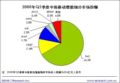 推薦本文根據(jù)艾瑞咨詢最新發(fā)布的《2008年第二季度中國(guó) 移動(dòng)增值市場(chǎng)監(jiān)測(cè)報(bào)告》的相關(guān)數(shù)據(jù)顯示,08年第二季度中國(guó)移動(dòng)增值服務(wù)市場(chǎng)的收入規(guī)模為336億元人民幣,其中傳統(tǒng)增值業(yè)務(wù)占據(jù)大部分市場(chǎng)份額,尤其是短信業(yè)務(wù),在增值服務(wù)市場(chǎng)上的份額達(dá)到了66.3%.預(yù)計(jì)隨著電信業(yè)重組的逐步完成及3G新業(yè)務(wù)的推出將對(duì)增值服務(wù)市場(chǎng)的發(fā)展起到積極的推動(dòng)作用,傳統(tǒng)短信業(yè)務(wù)的市場(chǎng)份額將會(huì)緩慢下降!