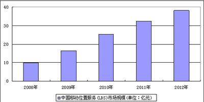 盡管GPS手機已蔚然成風(fēng),對于電信運營商的移動位置服務(wù)形成了巨大的沖擊,但是,GPS手機在地圖實時更新、軟件升級、交互功能和群組功能等方面與增值業(yè)務(wù)相比還存在一定的差距。在3G時代到來之際,電信運營商須深挖位置服務(wù)用戶的使用習(xí)慣,不斷創(chuàng)新產(chǎn)品、融合多種業(yè)務(wù)與服務(wù)模式,注重用戶參與、優(yōu)化用戶體驗,不斷強化自身在業(yè)務(wù)的實時性、互動性、綜合性等方面的優(yōu)勢,移動位置服務(wù)市場必將獲得飛速的發(fā)展。賽迪顧問預(yù)計:隨著3G用戶的拓展、3G業(yè)務(wù)的普及,LBS業(yè)務(wù)市場將得到飛速的發(fā)展,到2012年,中國LBS市場規(guī)模將達到38.24億元。