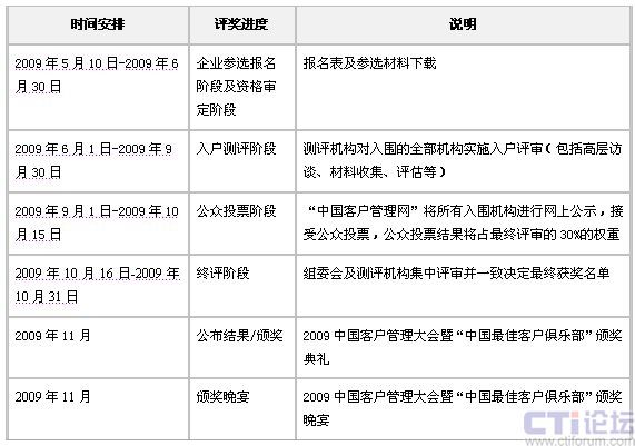 本次評(píng)選活動(dòng)將邀請(qǐng)國內(nèi)權(quán)威客戶管理研究機(jī)構(gòu)“迪銘客戶管理研究院”為唯一測評(píng)機(jī)構(gòu)。評(píng)選自2009年5月開始,經(jīng)過一系列的評(píng)選流程,評(píng)選最終結(jié)果將于2009年11月在北京舉辦的“2009中國客戶管理大會(huì)暨中國最佳客戶俱樂部頒獎(jiǎng)典禮”中隆重揭曉。