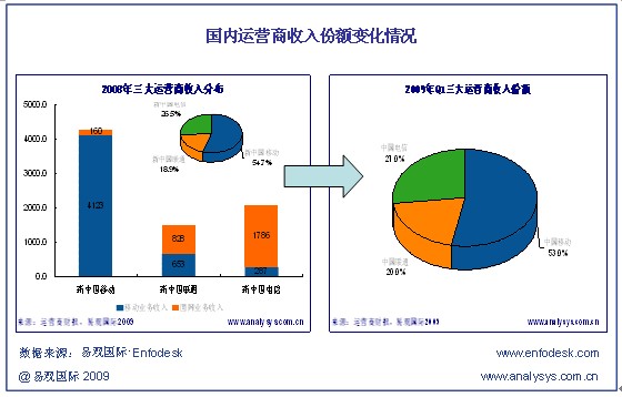 作為2008年度電信業(yè)內(nèi)最大的兩件大事,重組和3G牌照的發(fā)放不僅拉開了全業(yè)務(wù)競爭的序幕,而且為國內(nèi)電信市場的競爭注入了新的活力,一方面提供了讓電信業(yè)競爭逐漸趨于平衡的發(fā)展契機(jī),從另一方面也同時(shí)帶來了大量的消費(fèi)需求。