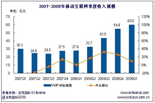 2009首季中國移動互聯(lián)網(wǎng)收入達(dá)60億 運營商官方門戶有望快速增長