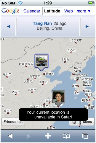 打開后會(huì)默認(rèn)顯示所有Google Profile里加入Latitude的好友: