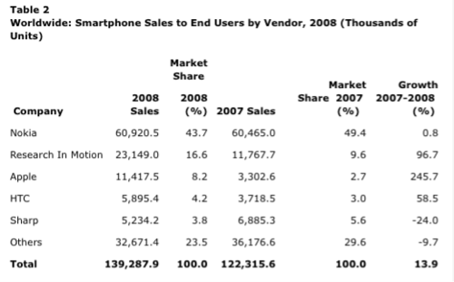 2007年6月29日,iPhone如期發(fā)布,其強勢的綁定分成模式曾遭到了來自各路分析師的質(zhì)疑,然而這些都沒有擋住它的熱銷, 市場調(diào)研機構(gòu)Gartner報告顯示,截至2008年底,蘋果在全球范圍內(nèi)共計銷售了約1200萬部iPhone ,整年銷量增長245%,是全球智能機銷量增幅最大的手機。
