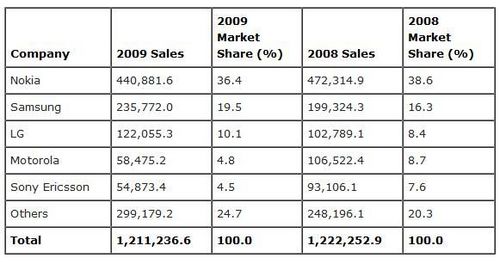 根據(jù)Gartner的數(shù)據(jù)顯示,去年共銷售出的智能手機(jī)達(dá)1.72億部,比前年上漲了24%,然而全世界手機(jī)的銷售總量卻并無(wú)起色(2008年為12.2億部,而2009年為12.1億部。在去年銷售的所有手機(jī)中,智能手機(jī)占14%,較2008(11%)年有所提升。iPhone盡管去年漲勢(shì)迅猛,只占去年各種手機(jī)銷售總量的2%。