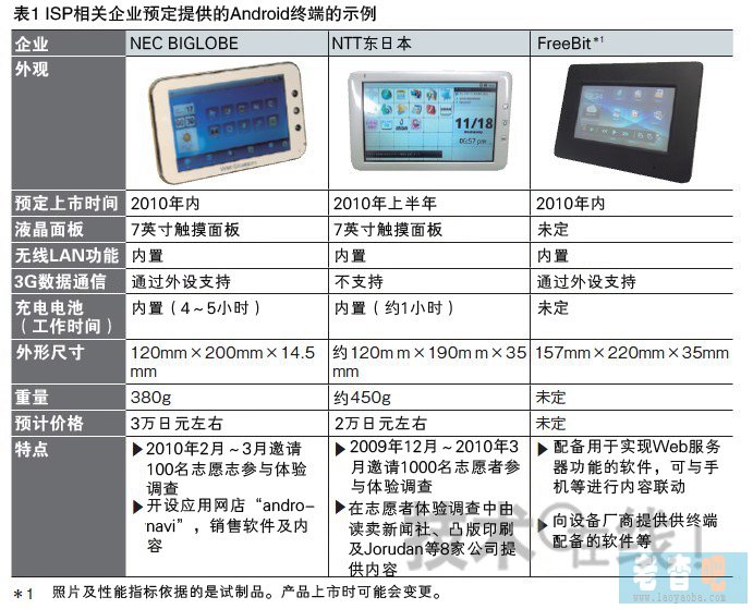 有類似舉措的并非只有NEC BIGLOBE一家。以ISP相關(guān)企業(yè)為中心,通信運營商涉足Android終端業(yè)務的行動在2010年將不斷出現(xiàn)(表1)。