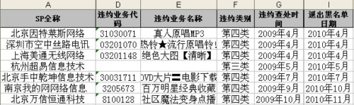07年5月,中國移動通信集團上海有限公司司已公告各合作伙伴,將于07年6月實施《SP違約考核黑名單制度》,并于每月公布上月考核結(jié)果,F(xiàn)公布截至2010年3月8日的違約考核黑名單。望各合作伙伴規(guī)范業(yè)務運營,營造有利發(fā)展環(huán)境,樹立誠信服務的行業(yè)形象。