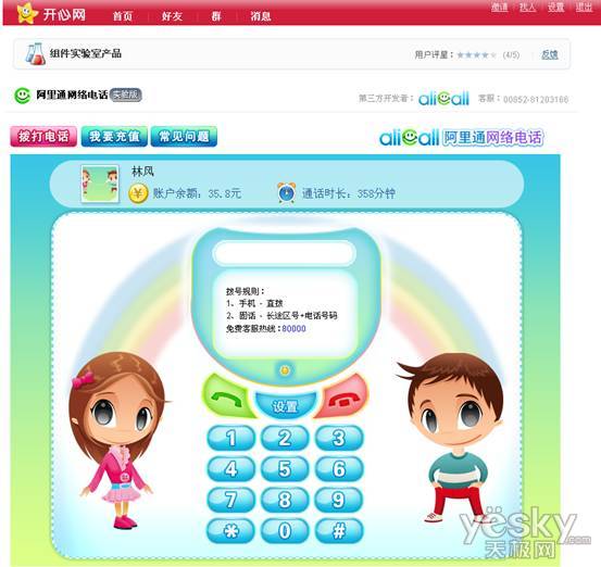 近日,阿里通網(wǎng)絡(luò)電話與國內(nèi)著名社交網(wǎng)站開心網(wǎng)合作,推出了定位于年輕族群,專為SNS網(wǎng)站量身定做的flash版網(wǎng)絡(luò)電話。開心網(wǎng)用戶只需在組件實(shí)驗(yàn)室中添加阿里通flash網(wǎng)絡(luò)電話,無須注冊(cè)和安裝任何插件,即可直接在開心網(wǎng)網(wǎng)頁上撥打全球任意的手機(jī)和固話。據(jù)悉,為了讓更多的用戶能體驗(yàn)到flash網(wǎng)絡(luò)電話的便利,只要開心網(wǎng)內(nèi)的好友達(dá)到5人,添加組件成功后都可獲贈(zèng)一定的免費(fèi)通話時(shí)長。