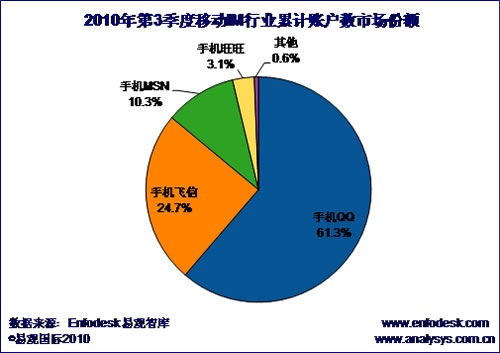 中國移動IM市場格局形成 手機QQ市占率超60%