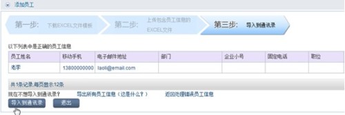 如果列表中顯示的信息正確無誤,即可點擊“導(dǎo)入到通訊錄”按鈕完成自定義通訊錄的操作。