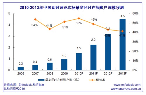 2013年中國IM市場最高同時(shí)在線賬戶規(guī)模將突破4億