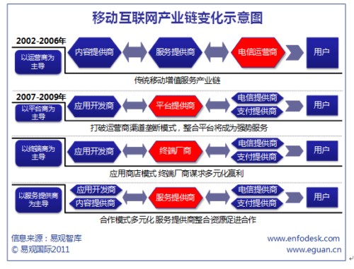 易觀:運(yùn)營商在移動(dòng)互聯(lián)網(wǎng)產(chǎn)業(yè)鏈中逐漸失去主導(dǎo)