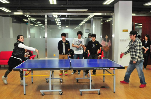 (十八) 5點(diǎn)鐘了啦,可以下班了喔,還是A班的我們幸福,晚班可就熬人啦,但不少時(shí)候?yàn)榱斯ぷ骱臀覀兊能囍骺蛻簦倳?huì)偷偷的說,“為人為己服務(wù)至上,有付出就會(huì)有回報(bào)……”下班時(shí)間約了同事在公司B2打乒乓球哦~勞逸結(jié)合,放松下,現(xiàn)場觀眾很多的,男同胞很捧場,哈哈。